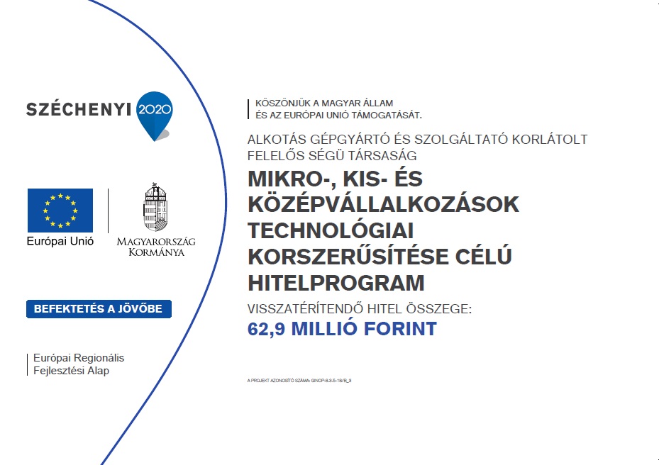 • A kedvezményezett neve: ALKOTÁS Gépgyártó és Szolgáltató Korlátolt Felelősségű Társaság