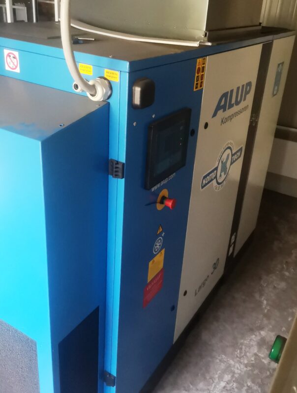 2022 szeptember – III. géppark korszerűsítés – hengerítő, 30 kW-os csavart kompresszor és táblaolló beszerzés, beüzemelés